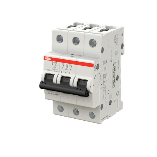 Wyłącznik nadprądowy MCB, Typ Z, 3-biegunowy, 1A, 400V, 125V, ABB, S200M