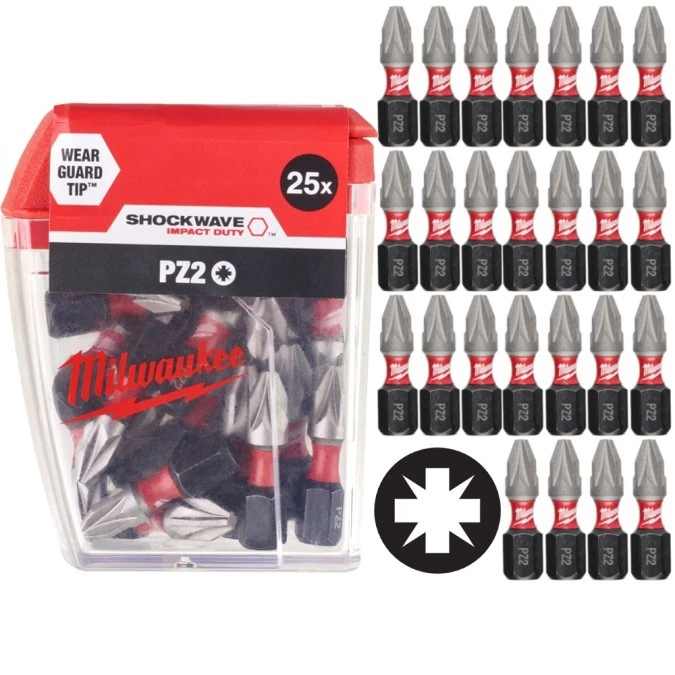 13. Bity udarowe do wkrętarki PZ2 25mm 1/4 SHOCKWAVE 25szt MILWAUKEE 71.14