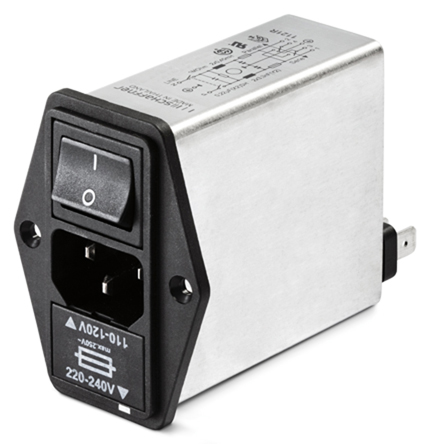 14. Gniazdo zasilające IEC z filtrem przeciwzakłóceniowym 6A C14 Schaffner Montaż na panelu 260.37