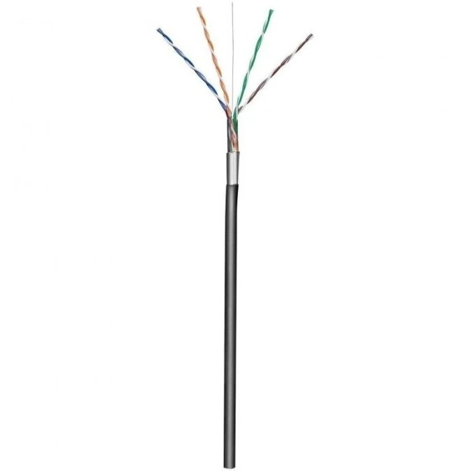 Kabel Skrętka Kat 5e F/UTP Drut 305m Czarna Zewnętrzna CCA