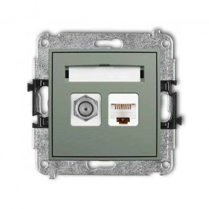 1. MINI Mechanizm gniazda antenowego poj. typu F (SAT) + gniazda komp. 1xRJ45, kat. 5e, 8-stykowy, bez opisu szałwiowy 61MGFKBO-1 73.76