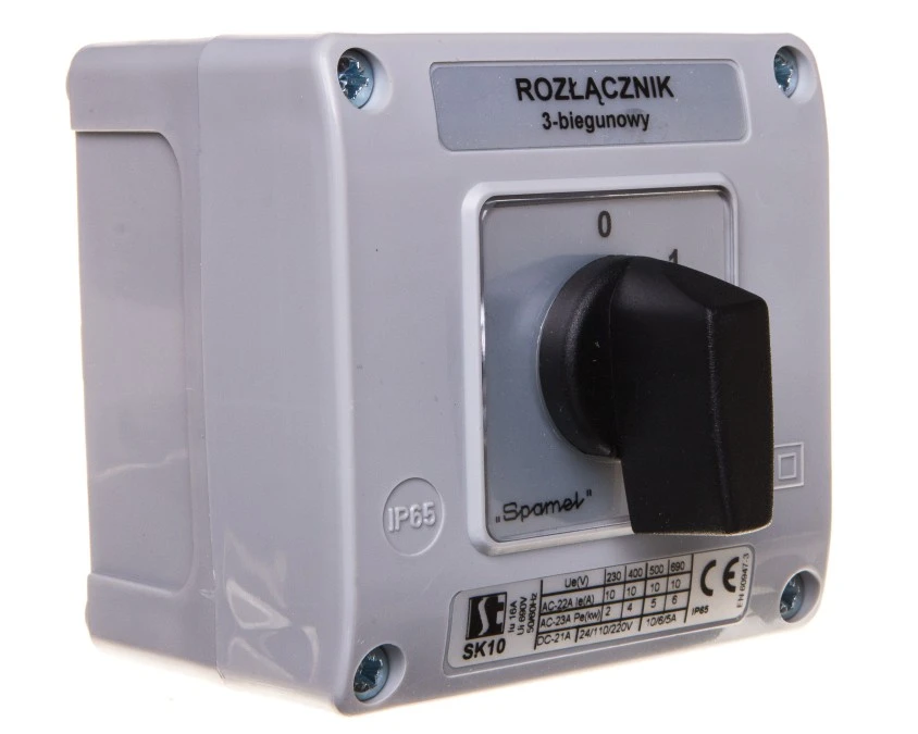 Łącznik krzywkowy 0-1 3P 10A w obudowie pokrętło ...