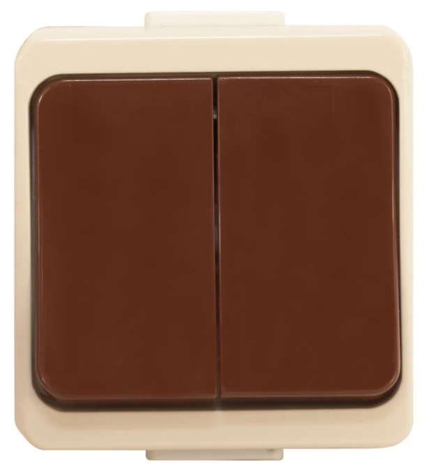 13. Jantar Łącznik 2-klawiszowy świecznikowy z podświetleniem natynkowy kombinacja kolorów brąz i beż WNT-2Jb/S BE/BR 17.29