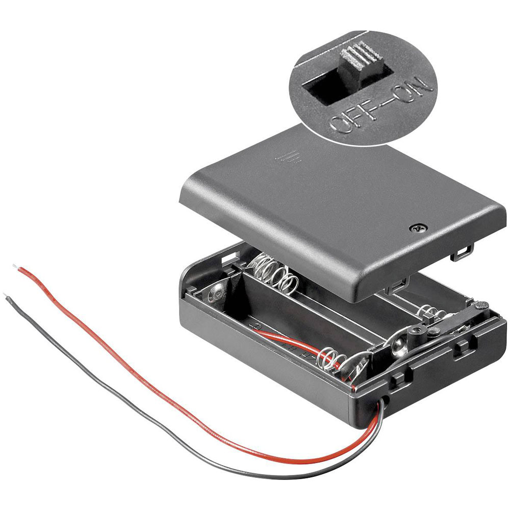 Goobay 12445 Battery Box 3x AA 150mm Cables On/Off Switch