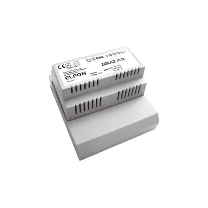 1. Zasilacz 14V 1,5A 20VA Elfon systemu Optima (natynkowy lub na szynę DIN) AC-20 93.04