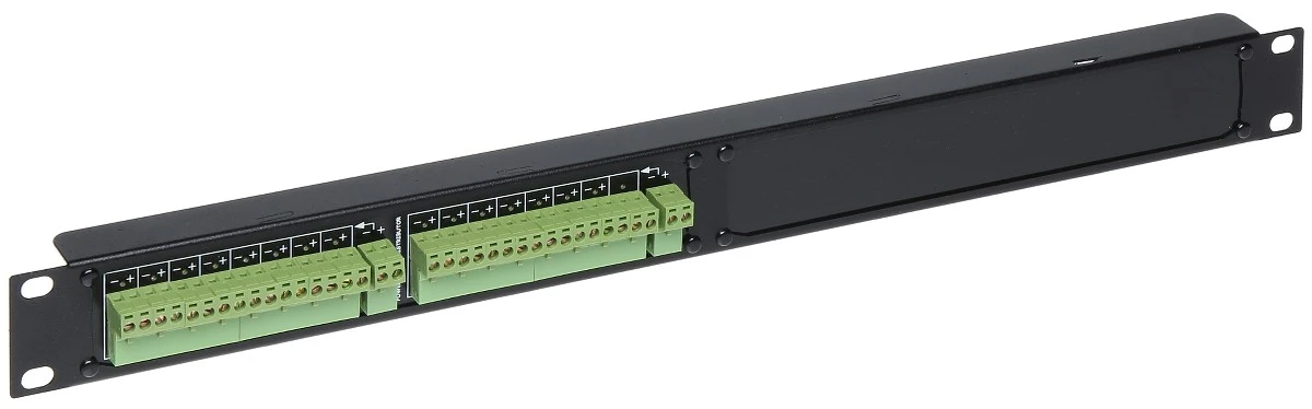 5. Dystrybutor zasilania (łączówka, rozgałęźnik) 2-we/2x8-wy max.24VDC 5A bezpiecznik 16x0,75A Rack 19” LZ-16/POL/R19 232.59