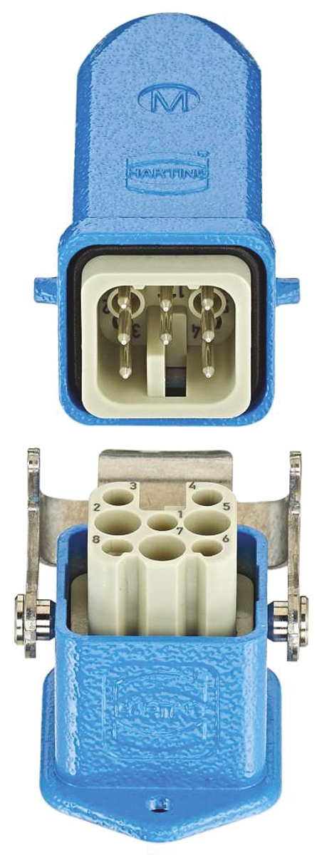 8. Wzmocnione złącze zasilania 8-pinowe HARTING 10A 90 V Żeńskie do męskiego 595.70