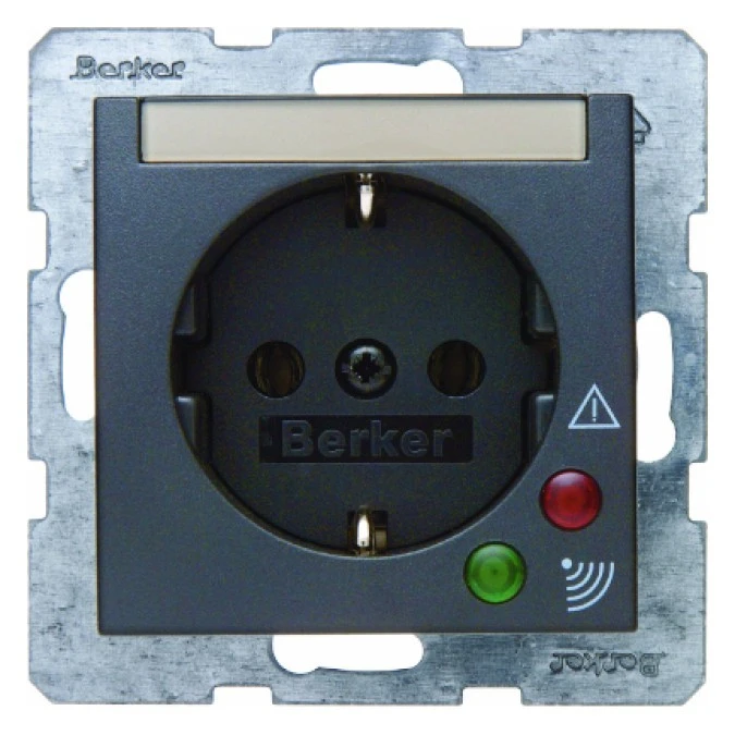 Gniazdo SCHUKO z ochroną przepięciową i polem opisowym antracyt B.1/B.3/B.7 Glas 41081606