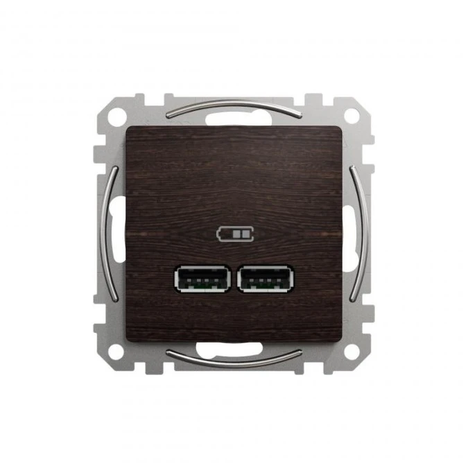 Gniazdo ładowania USB typ A+A 2,4A, wenge, efekt drewna, Sedna Design i Elements SDD181401