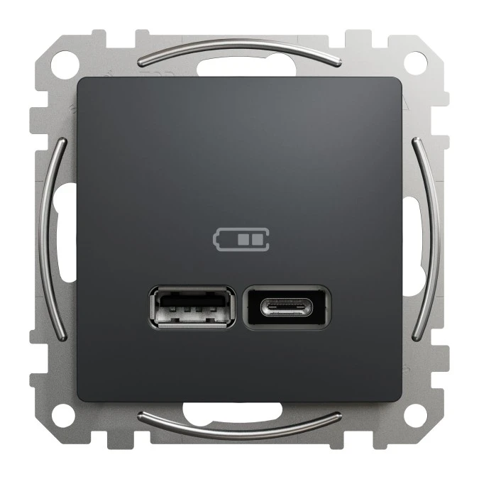Gniazdo ładowania USB typ A+C 2,4A, czarny antracyt, Sedna Design i Elements SDD114402