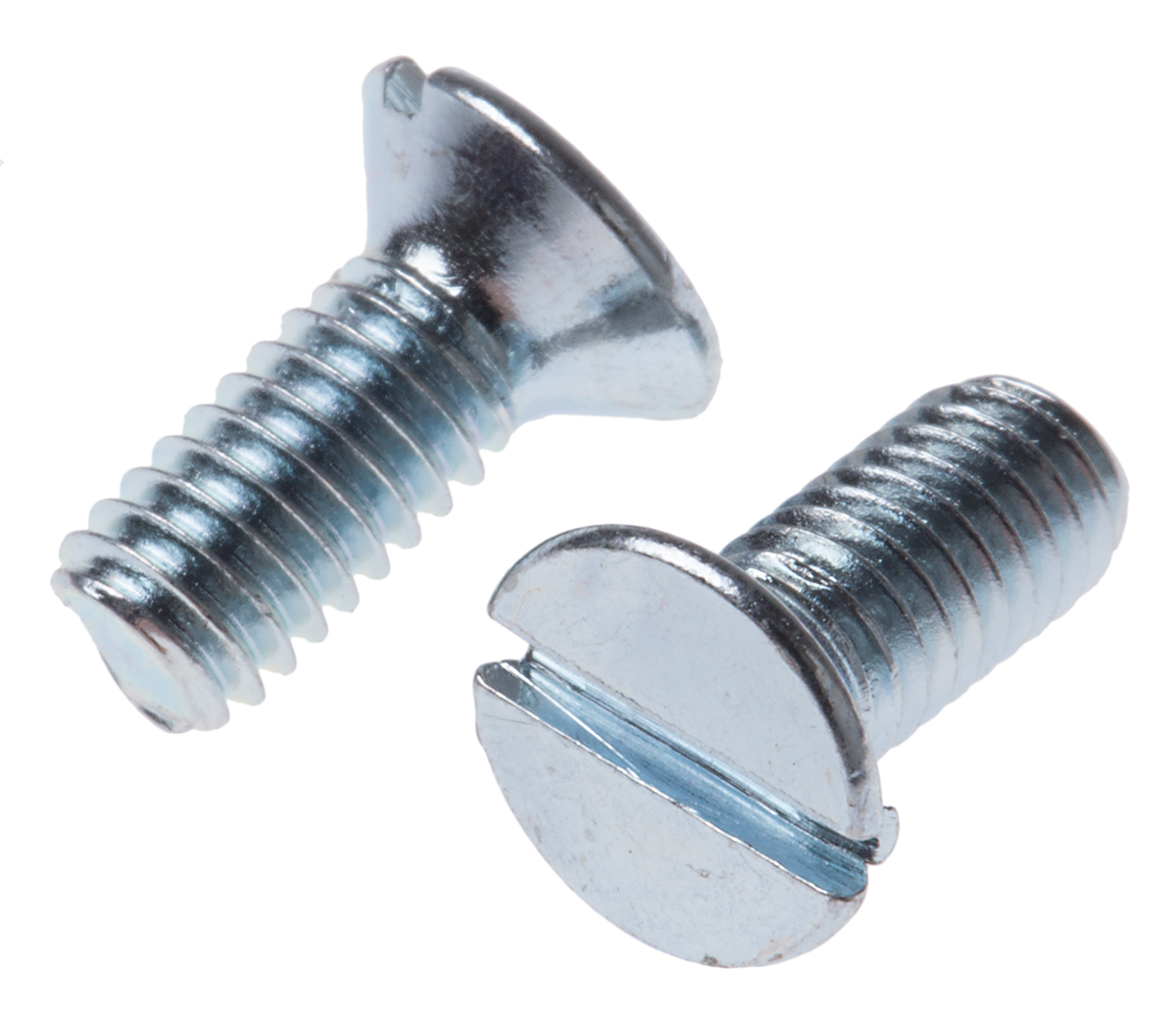 Te śruby maszynowe z łbem płaskim, pochodzące od ...