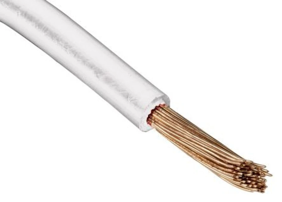 12. Przewód o podwyższonej odporności ETFE Biały, 100m 19/0,12 mm, 600 V, -75 → +150C, Ø 1.15mm, RS PRO 529.86