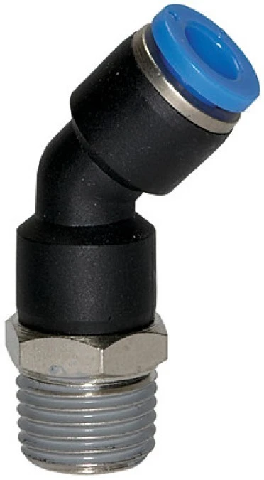 Złączka pneumatyczna wtykowa kątowa 45 M6 GZ, do węża fi 4 mm, tworzywo sztuczne
