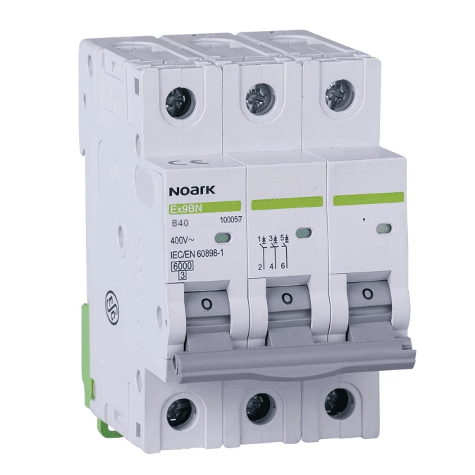 15. Wyłącznik nadprądowy S bezpiecznik 3-fazowy C40 (C 40A) 3-biegunowy 3P (400V AC) 3-modułowy NOARK 64.94