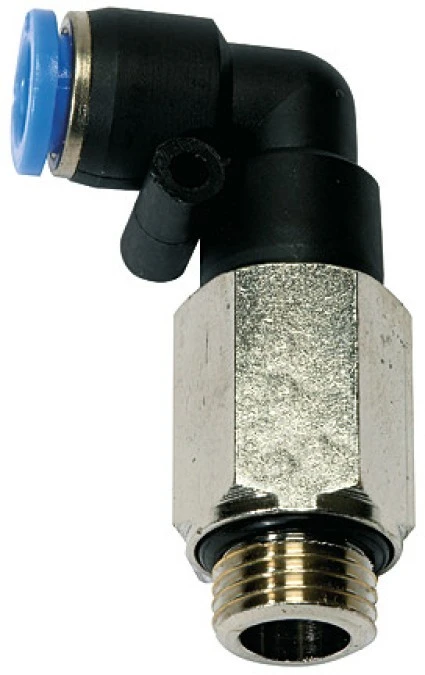 8. Złączka wtykowa kątowa obrotowa przedłużona M5 GZ do węża fi 4 mm, tworzywo sztuczne 17.04