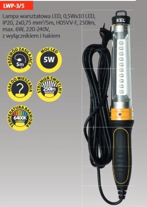 ... warsztatowa LED 6W 250lm z hakiem LWP-3/5