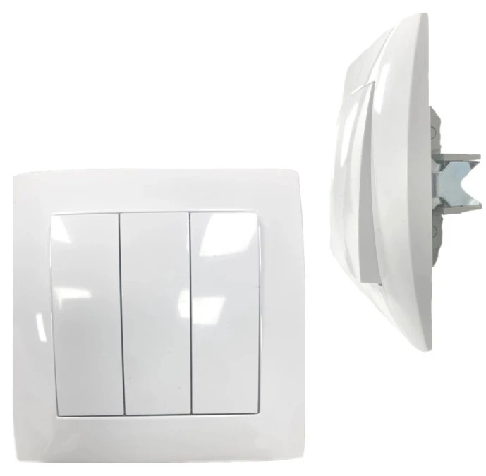 7. Włącznik do Światła Potrójny Wyłącznik Łącznik Podtynkowy 230V Biały WESA 11.09