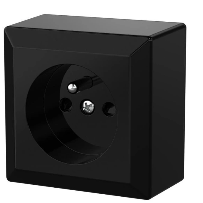 Gniazdo pojedyncze z uziemieniem natynkowe IP20 GAO, czarne / 20465