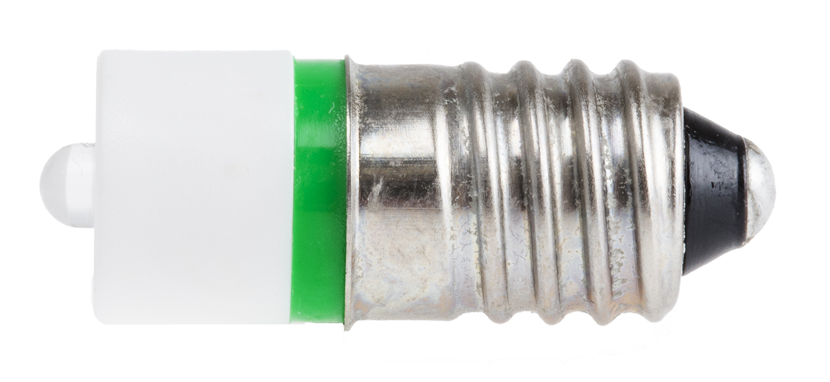 6. Lampka kontrolna Zielony 230V ac E10 LED średnica 10mm długość 25.25mm 59.18