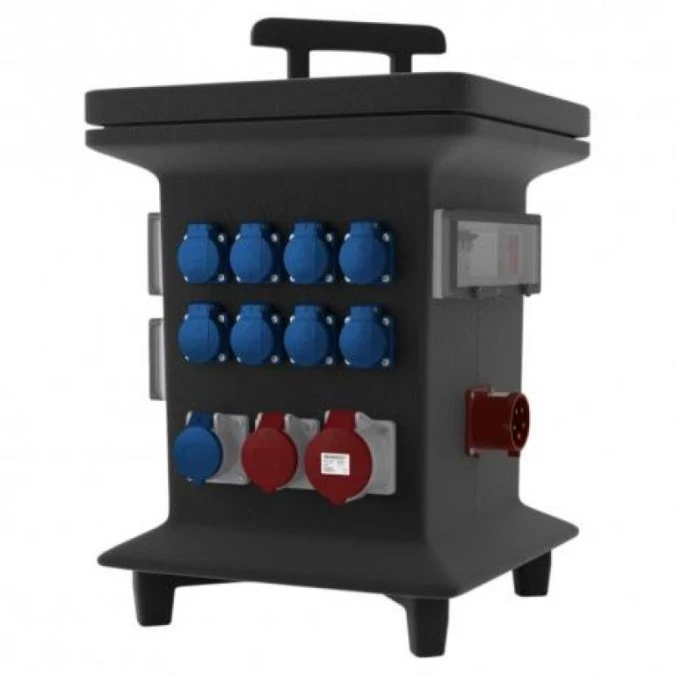 1. Rozdzielnica budowlana KIB-S/FI 2x32A 2x16A 2xCamp 16x230V odbiornikowe 32A 3 fazowy woltomierz Schuko DV-0885-D 3128.09