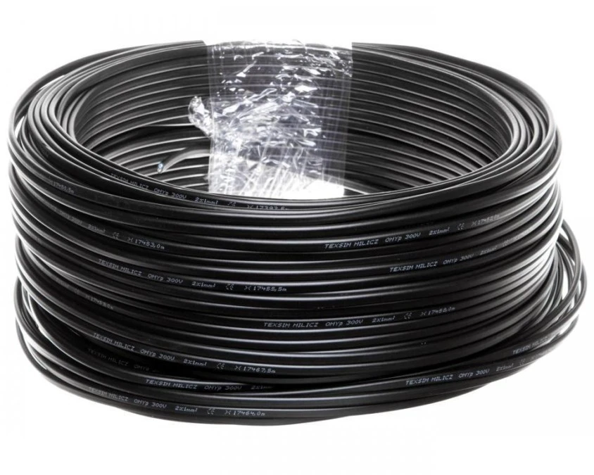 6. Przewód prądowy H03VVH2-F / OMYp 300V 2x1 płaski czarny linka Elektrokabel 25m 50.27