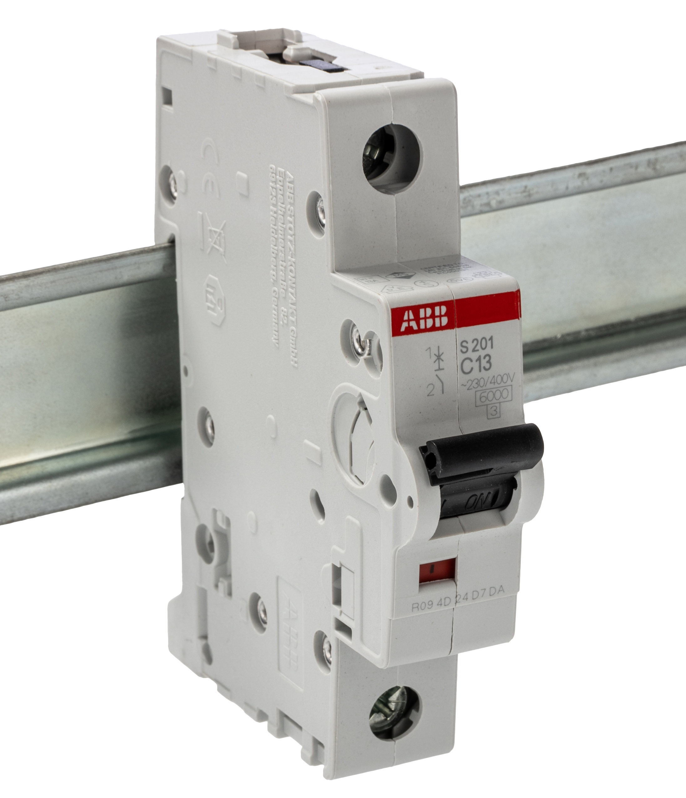 Wyłącznik nadprądowy MCB, Typ C, 1-biegunowy, 13A, 230V, 72V, na szynę DIN, ABB S201-C13, S200