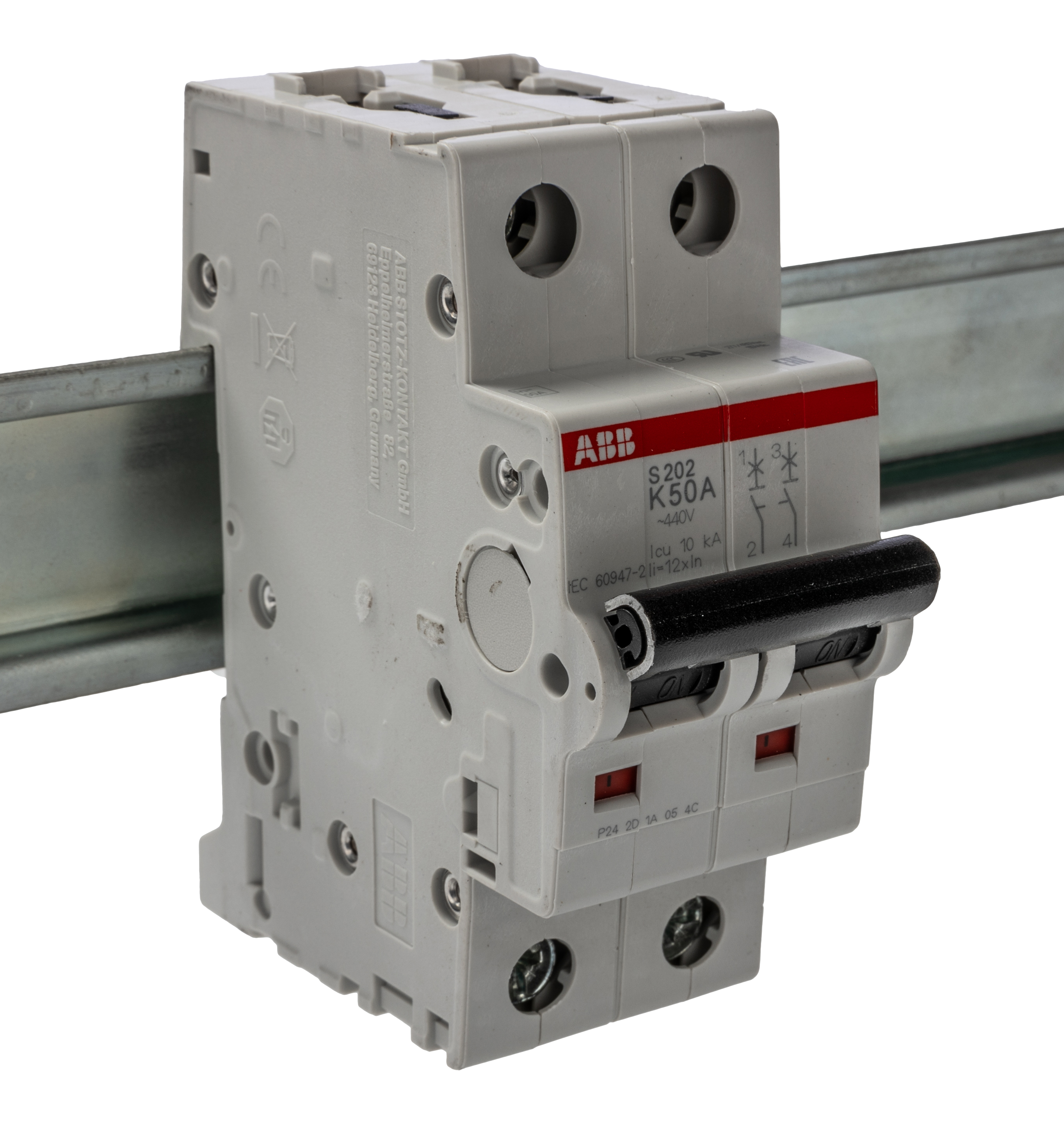Wyłącznik nadprądowy MCB, Typ K, 2-biegunowy, 50A, 400V, 125V, na szynę DIN, ABB S202-K50, S200