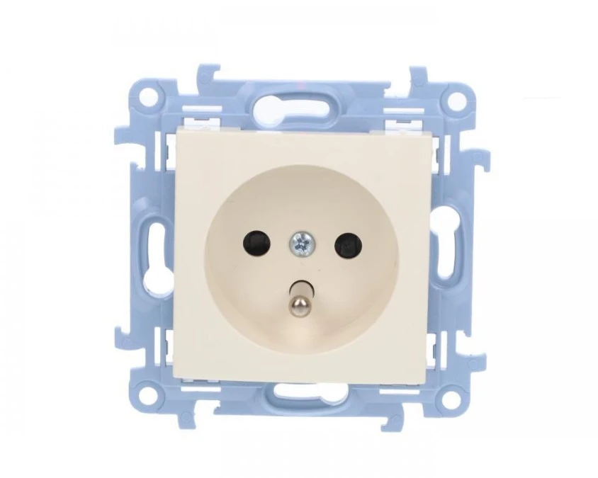 Simon 10 Gniazdo pojedyncze z uziemieniem z przesłonami torów prądowych kremowy 16A, szybkozłącza, CGZ1CZ.01/41