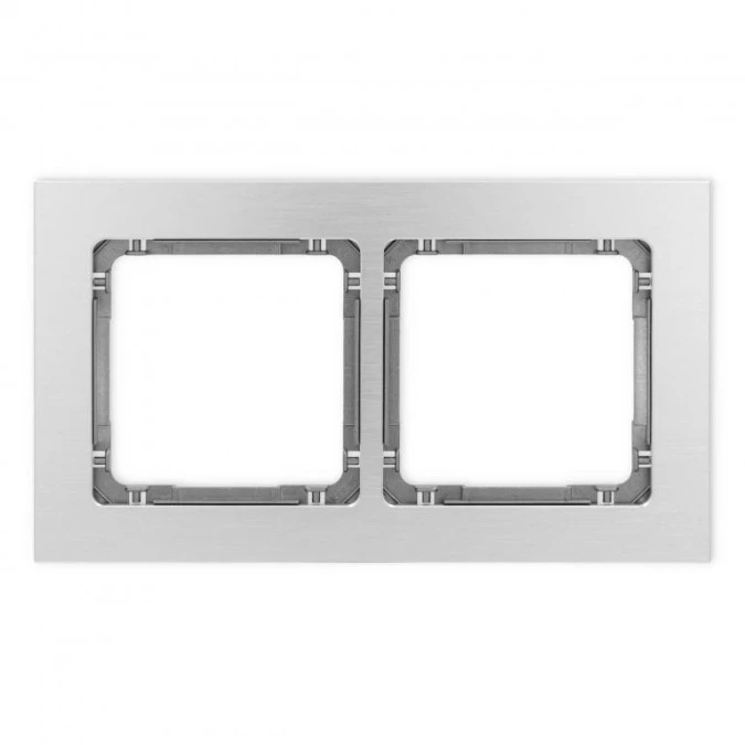 DECO Ramka uniwersalna podwójna - aluminium szczotkowane (ramka: srebrna spód: biały) 7-0-DRA-2