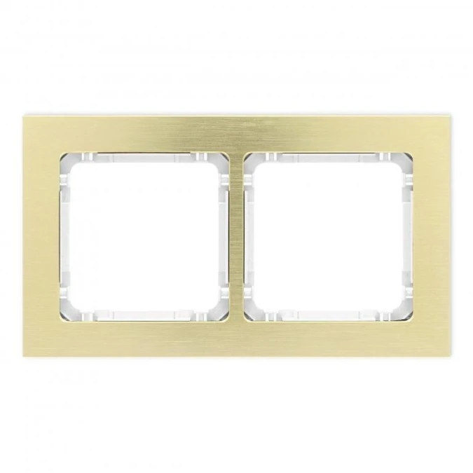 DECO Ramka uniwersalna podwójna - aluminium szczotkowane (ramka: kolor mosiężny spód: biały) 8-0-DRA-2