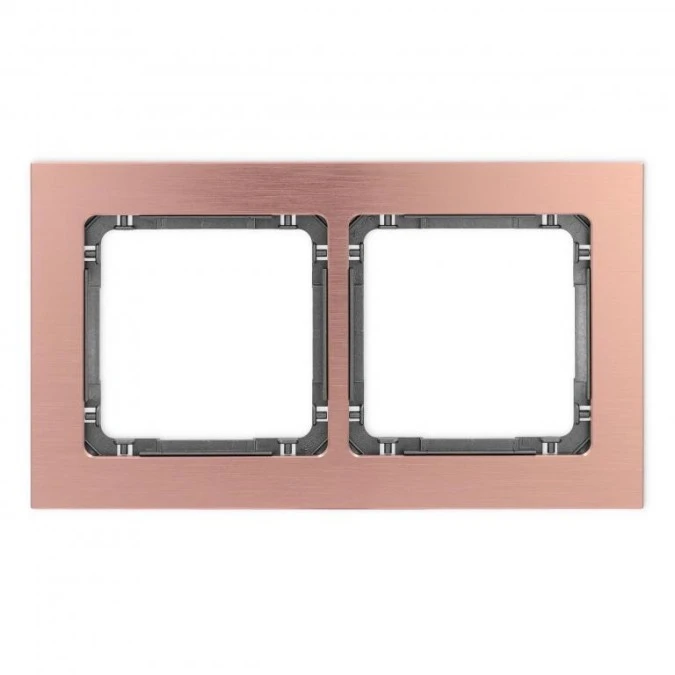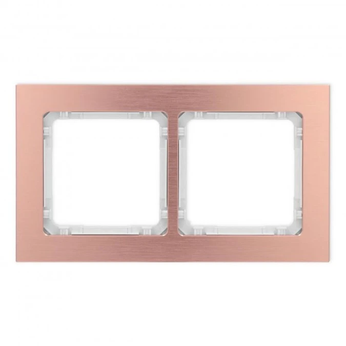 DECO Ramka uniwersalna podwójna - aluminium szczotkowane (ramka: kolor miedziany spód: biały) 9-0-DRA-2