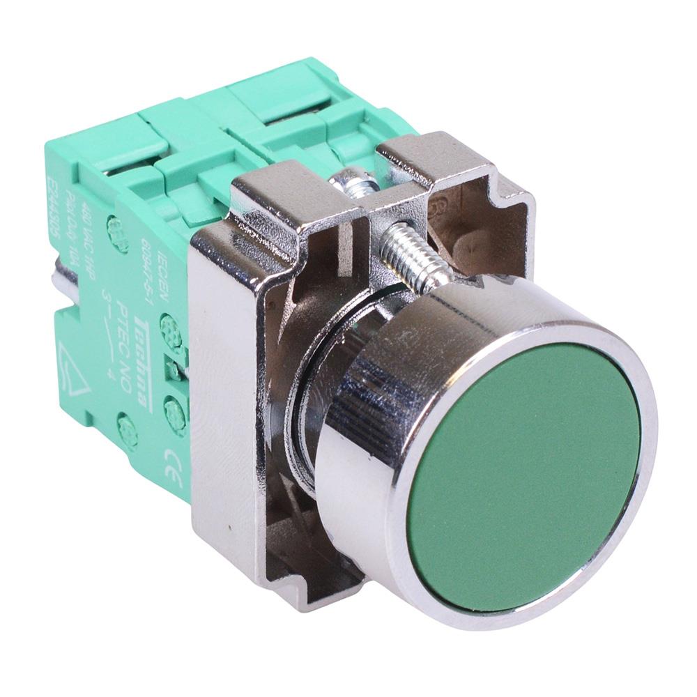 Techna PtecMetPNGreen Green Flush Push Button Switch Metal 10A 2NO