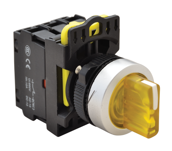 Przełącznik trzystanowy podświetlony LED 22mm żółty IP65 Tracon