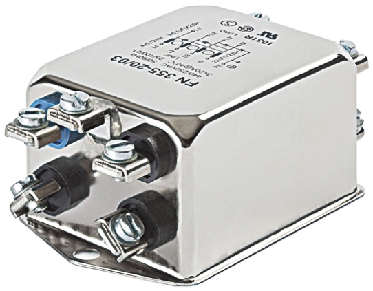 5. Filtr RFI 3A 3-fazowy 40mΩ 480 V AC 50 → 60Hz 3 mH Schurter, montaż na szynie DIN 280.33