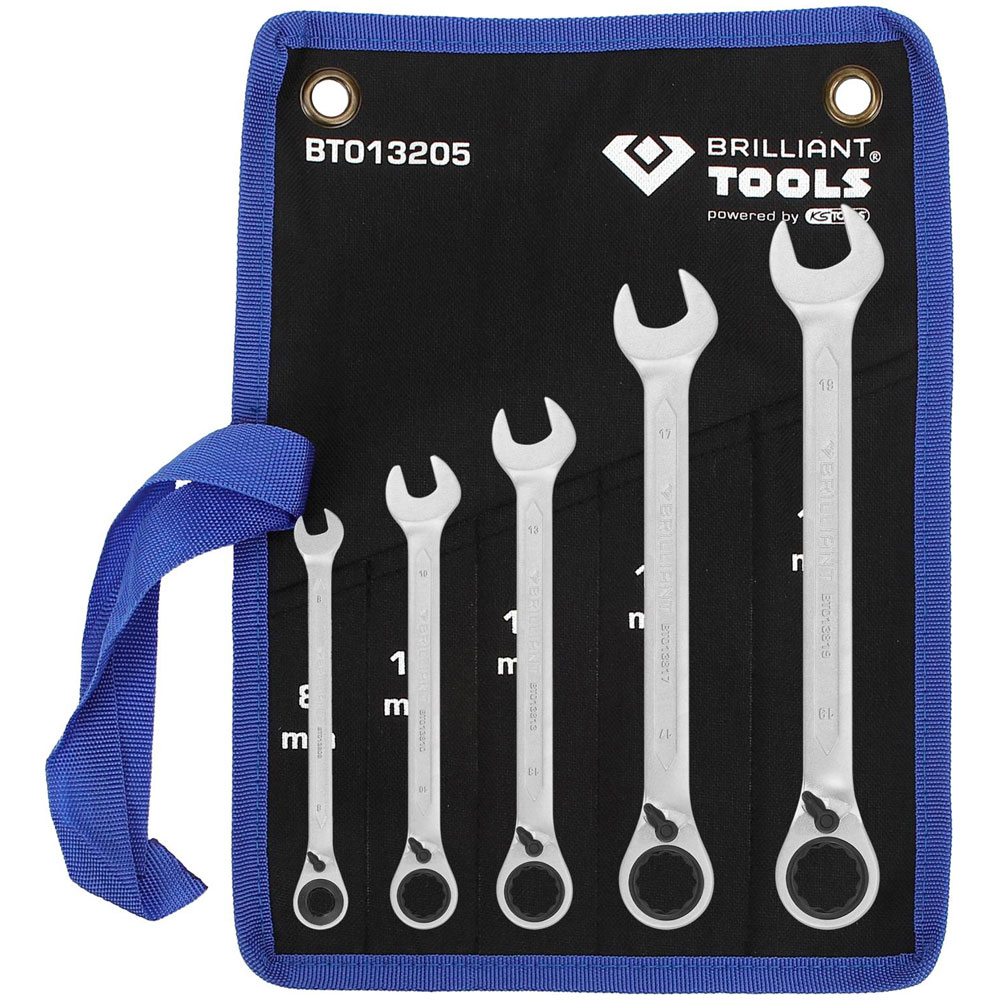 Brilliant Tools BT013205 Ratchet Wrench Set 8-19 mm 5-Piece Chrome Vanadium