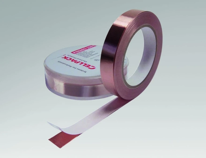9. Taśma metalizowana szerokość 25mm Taśma miedziana grubość folii 0.035mm Advance Tapes wytrzymałość termiczna +155°C 607.04