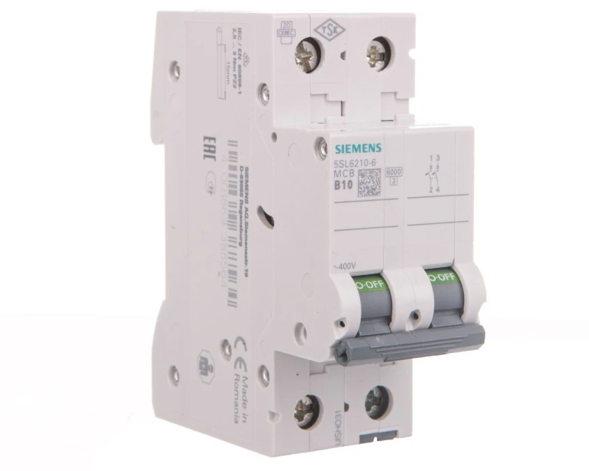11. Wyłącznik nadprądowy 2P B 10A 6kA AC SENTRON 5SL6210-6 54.71