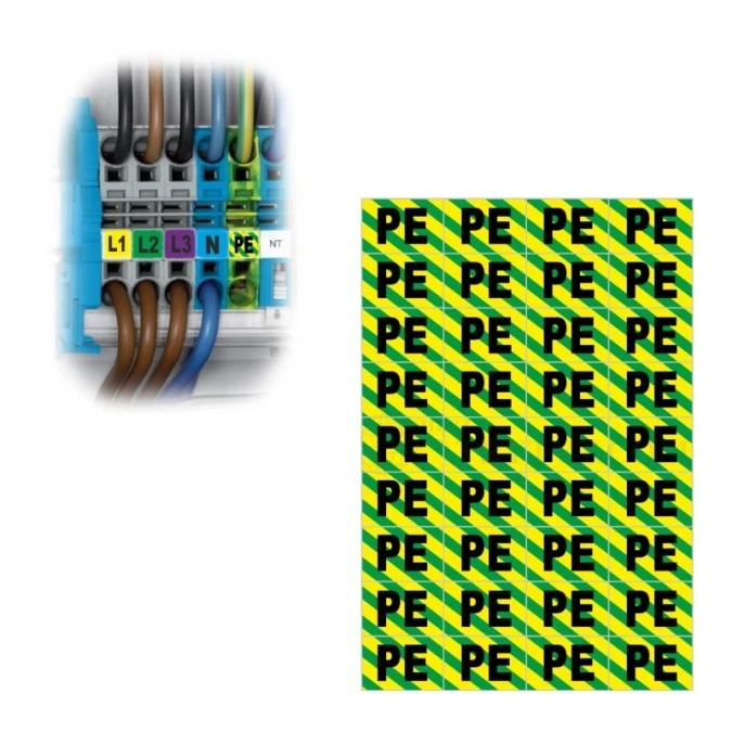 8. Arkusz Samoprzylepny Znak Oznaczenie Przewód Uziemiający PE Naklejka Żółto-Zielona 36 Szt. 17.99