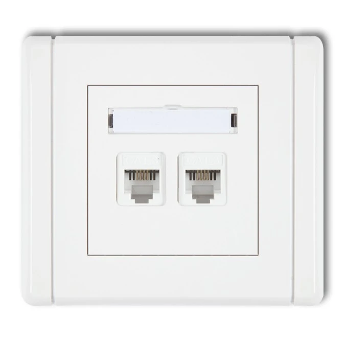 12. DECO Mechanizm gniazda telefonicznego podwójnego 2xRJ11, 4-stykowy, beznarzędziowe, bez pola opisowego biały mat 25DGTBO-2 KARLI 54.33