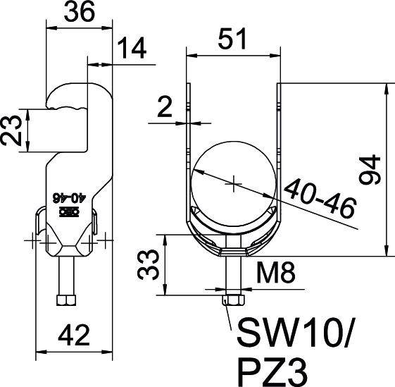 Zacisk U z podstawą RS, metalowa taca dociskowa z ...