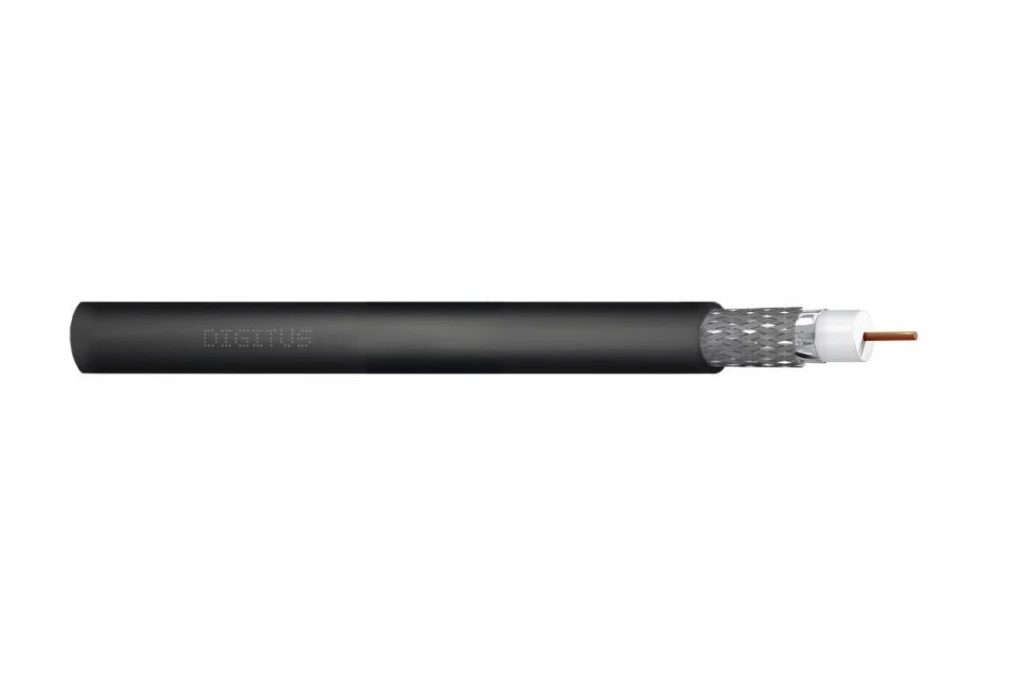 Kabel koncentryczny DIGITUS RG-6, 75 Ohm ekran (2x folia +oplot 77) Fca PE czarny DK-RG6-O-1 /100m/