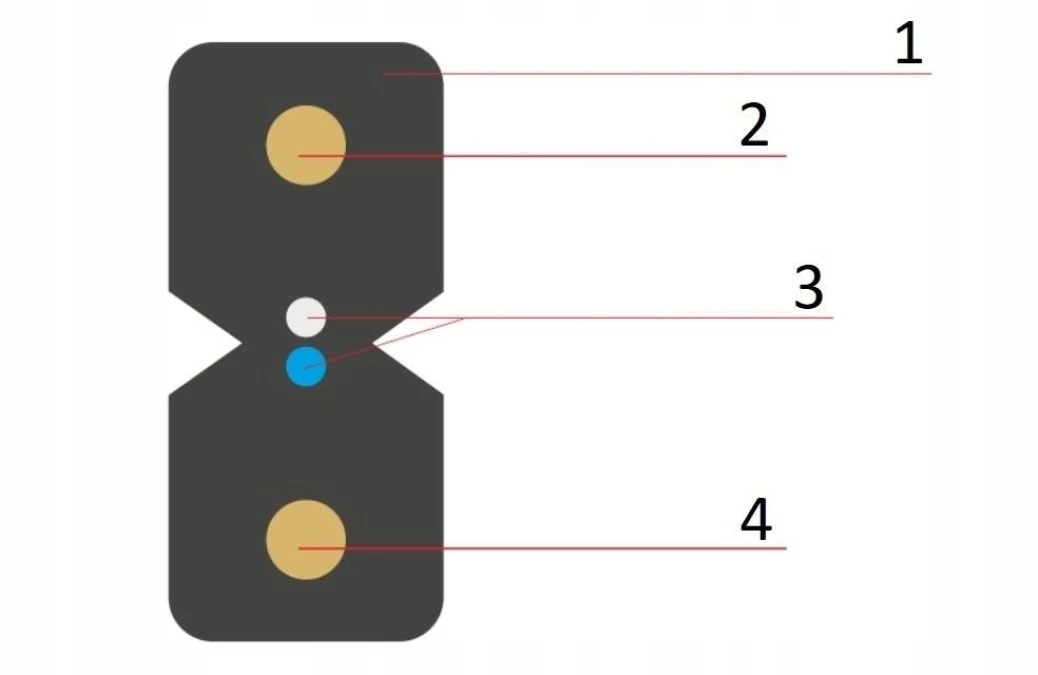 1. Kabel światłowodowy FTTH, 2J, SM 9/125, LSOH, wzmocnienie FRP, całkowicie dielektryczny, biały ALANTEC /1000m/ 521.25