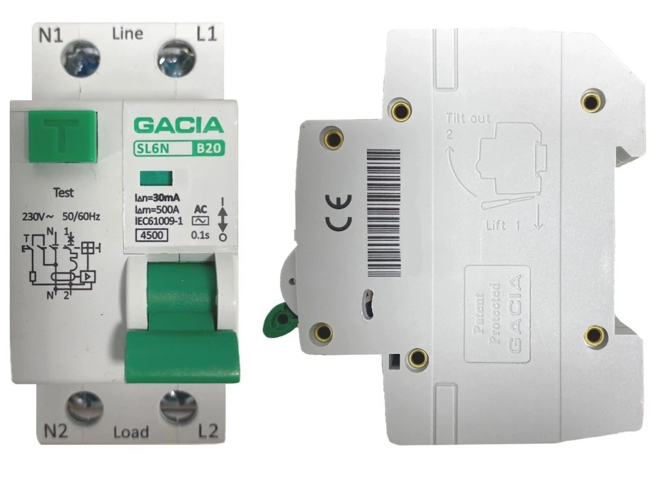 Wyłącznik Różnicówka z Członem Nadprądowym B 20A 30mA 1P+N TYP AC GACIA