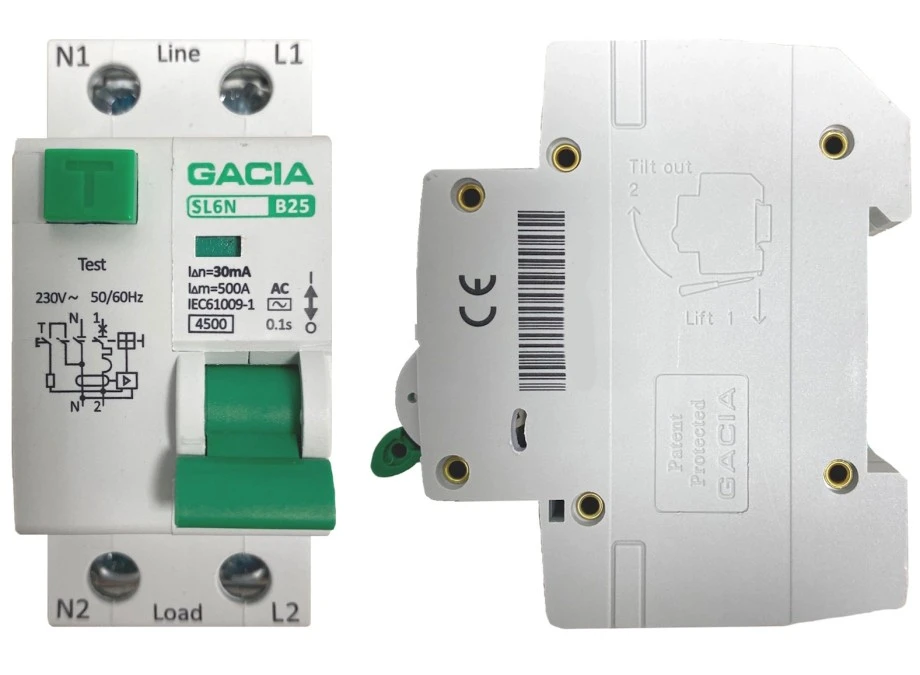 5. Różnicówka Wyłącznik z Członem Nadprądowym B 25A 30mA 1P+N TYP AC Gacia 72.02