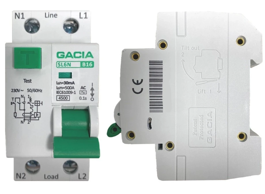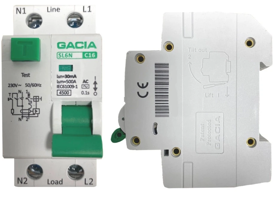 Wyłącznik Różnicówka z Członem Nadprądowym C 16A 30mA 1P+N Typ AC Gacia
