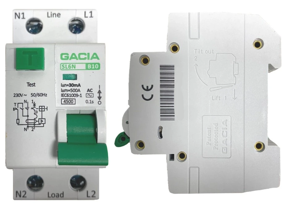 Wyłącznik Różnicówka z Członem Nadprądowym B 10A 30mA 1P+N TYP AC Gacia