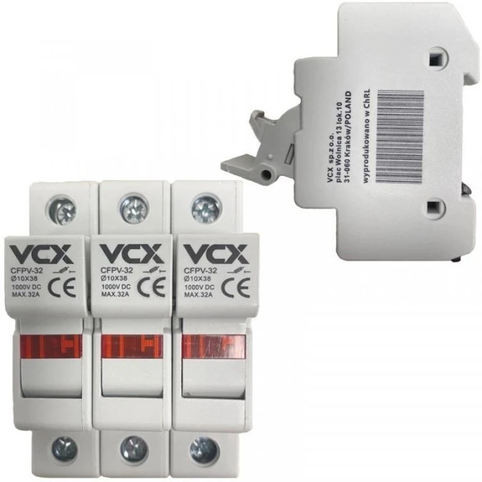 Podstawa Bezpiecznikowa 3 Polowa Podświetlana 10×38max 32A 1000V DC