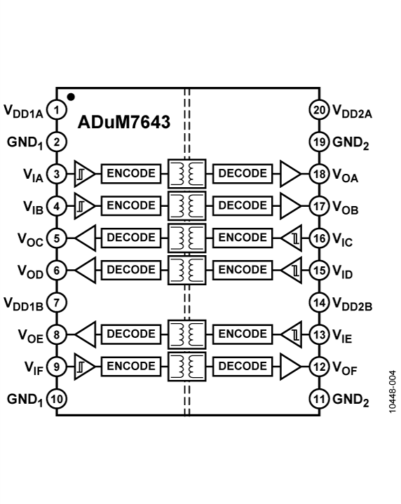 1 V RMS Six-Channel Digital Isolators (4/2 Channel Directionality)