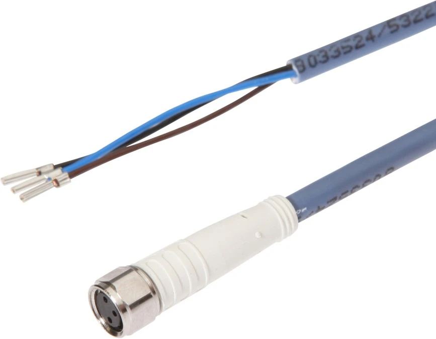 1. Kabel połączeniowy, 2m, M8 żeński (gniazdo) 3pin prosty, Końcówka wolna, 3x0,34mm², VK20L075 160.95