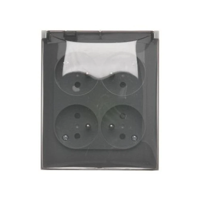 12. Simon Aquaclick Gniazdo natynkowe, 4-krotne z uziemieniem, klapka transparentna, IP44, szybkozłącza ciemnoszary ACGZ4C/18A 53.68
